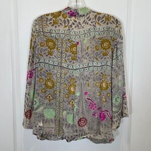 Anthropologie Floreat Japonica Blouse Silk Blend Floral Paisley Sheer Wrap L