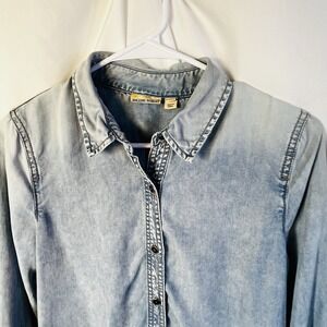 Anthropologie Denim Chambray Shirt Women's Sz 4 Blue Long Sleeve Holding Horses