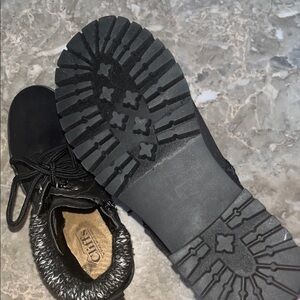 Chic black ankle boots with a cozy knit trim. Ideal for everyday wear. Never used size 6.5 W