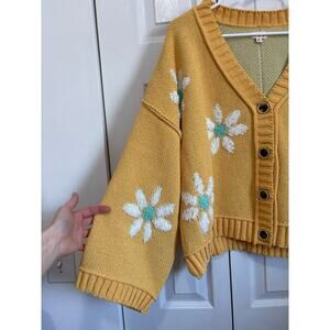 Pol Yellow Daisy V-Neck Oversized Soft Cardigan Size Medium
