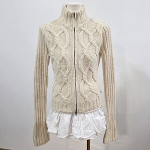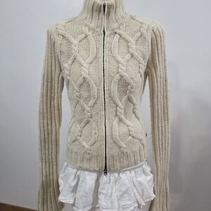 Abercrombie Vintage Cream Knit Long Sleeve Zip Up Sweater