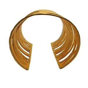 Wide Gold Tone Cuff Stacked Bracelet Sculptural Modernist Bangle Statement Fajl