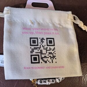 Elegant bracelet featuring 'Be Kind' message. Includes white beads and gold details. New and made by Little Words Project.