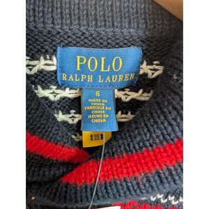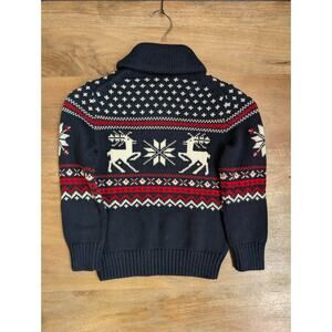 Polo Ralph Lauren Sweater Boys Size 6 Navy Reindeer Long Sleeve Shawl Collar NWT