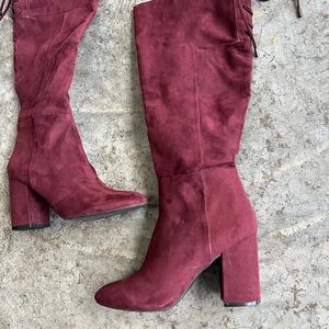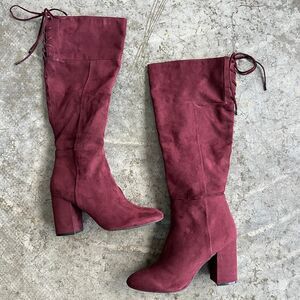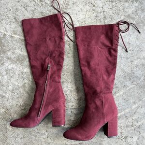 Kenneth Cole, Burgundy Boots, Suede Boots, Coquette, Dark Academia, Block Heel, Tall Boots, Winter Style, Maroon