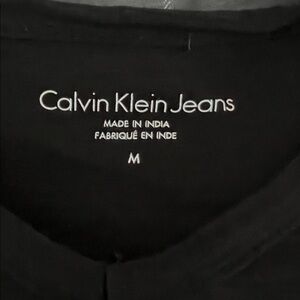 A classic black t-shirt from Calvin Klein Jeans, featuring a simple design suitable for casual wear. Made in India, this medium-sized shirt offers a comfortable fit. Measurements: Chest Width: 45.8 cm | 18" Body Length: 75.7 cm | 29.8" Shoulder Width: 45 cm | 17.7" Bottom Hem Width: 45.7 cm | 18" Sleeve Length: 27.6 cm | 10.9" Waist Width: 48.2 cm | 19" Sleeve Opening Width: 6.6 cm | 2.6"