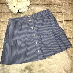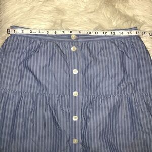 Good, preloved condition. Madewell Bistro Stripe Mini Skirt. Cool shirting stripes meet a flirty seamed silhouette. A pretty, playful skirt with buttons all down the front. A-line skirt. 16" long.