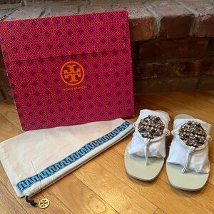 Gorgeous & AUTHENTIC Tory Burch Crystal Embellished Square Toe Miller Sandals in New Ivory!!