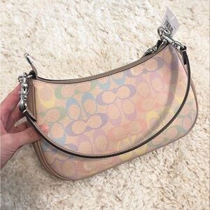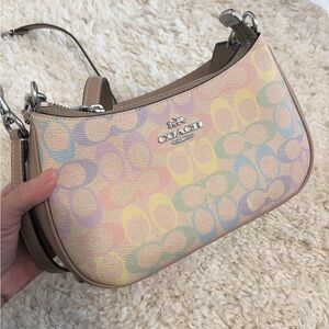 NWT🌈Coach Teri Shoulder Bag In Rainbow Signature Canvas Two Way Straps CDA91