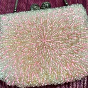 Vintage Micro Beaded Pink Starburst Purse