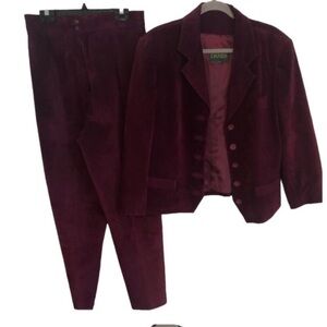 DANIER Vintage Leather/Suede 2 piece Pant Suit Wine color Size Medium