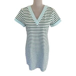 T by Talbots Green White Contrast Trim V-Neck T-Shirt Dress Short Sleeve, M