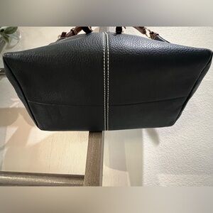 •Brown leather trim with contrast stitching