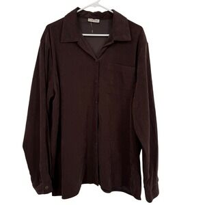 Courtenay Mens Brown Faux Suede Button Up Long Sleeve Collared Pocket Large