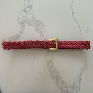 Vintage Talbots Braided Leather Belt Solid Brass Square Buckle Gloss Pink M
