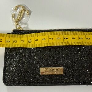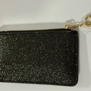 Chic black wristlet with shimmering gold glitter. Perfect for adding sparkle to any outfit.