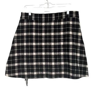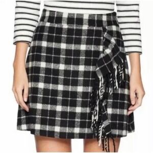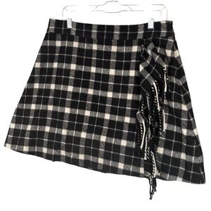 Kate Spade Womens A-Line Mini Skirt Black Plaid Size 14 Ruffle Fringe Preppy