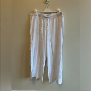 Our favorite Pima in Pointelle. Shown in White, this pajama set features a tonal patterned weave in a lightweight knit ideal for hot sleepers or warm climates. The scoop neck tank top has a casual swing paired with wide-leg pants with a drawstring tie. Made from 100% Pima cotton Excellent gently used condition