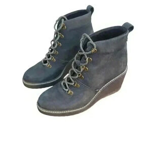 TOMS Womens Melrose Black Lace Up Nubuck Ankle Wedge Boots Size 8-1/2