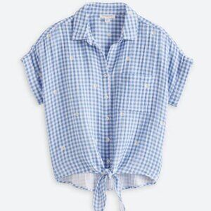 COPY NWT Beach Lunch Lounge Rosie Tie Front Blue Striped Embroidered Cotton Blou