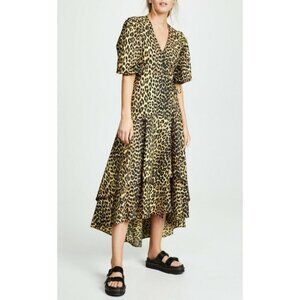 Ganni Bijou Leopard Cotton Wrap Dress Yellow Size 38/ US 6