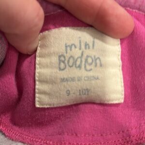 Mini Boden velour grey and purplish blue polka dots hooded dress size 9-10