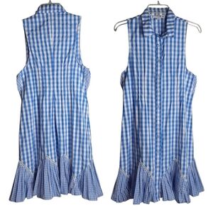 Thakoon Gingham Cotton Mini Dress Cottage Girly Prep Feminine Blue White Check S/M 4 or 6