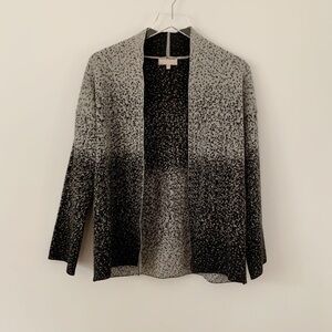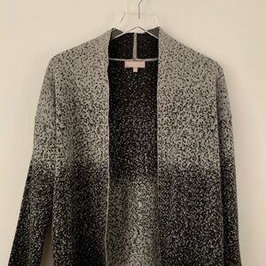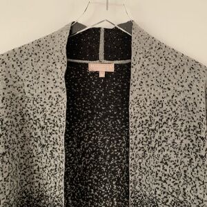 Sweater by Bendetta B. Open cardigan style. Black and gray design. Wool blend.