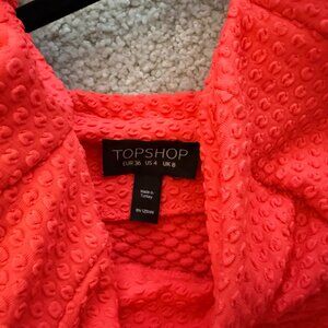 TOPSHOP Neon Coral Textured Cutout Back Dress US 4