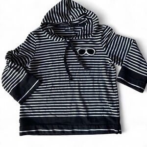 Karl Lagerfeld Striped Hoodie – XS – Iconic Sunglasses Embroidery – Super Soft!