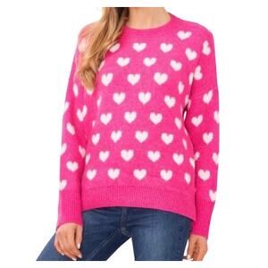 Vince Camuto Cozy Ponk Heart Print Knit Sweater Crewneck Size Medium