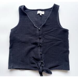 Madewell Black Textured Tie Front Button Down Tank Top Size Small