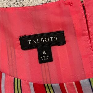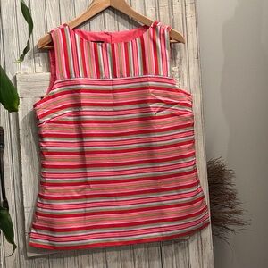 TALBOTS 100% SILK vibrant sleeveless blouse with multicolor stripes.