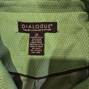 Dialogue Green Textured Button-Front Blazer Jacket Plus Size 2X