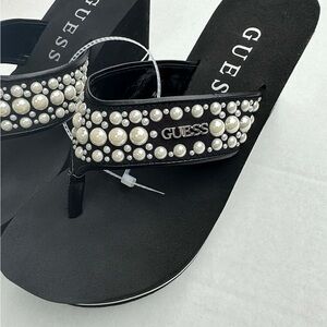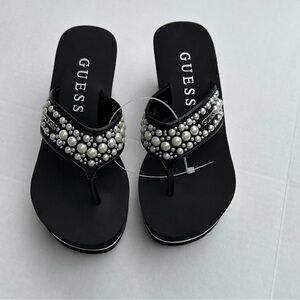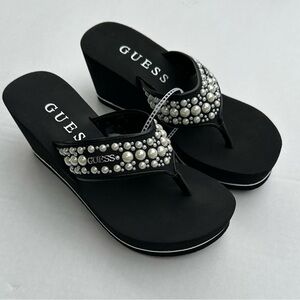 Chic black wedges by Guess. Adorned with elegant pearl details. Ideal for any occasion.