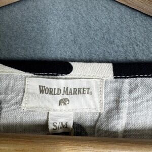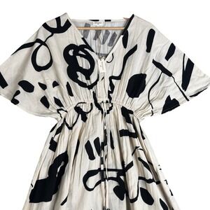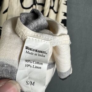 World Market Cotton Linen Abstract Graphic Maxi Kaftan Dress White Black S/M NWT