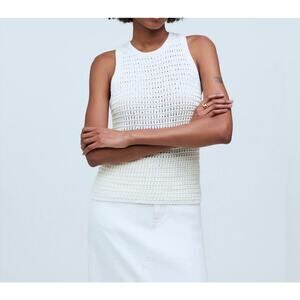 Madewell Bright Ivory Crochet Knit Crewneck Sweater Tank Summer Top Size S NWT