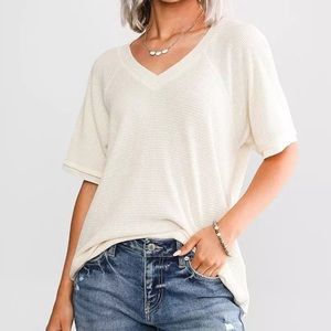BKE Strappy Waffle Knit Top - Cream