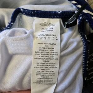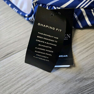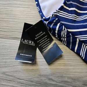 Lauren Ralph Lauren Harper Stripe One Shoulder One Piece Swimsuit Navy 6 NWT