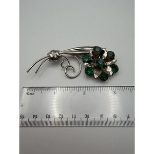 Keywords: Vintage Jewelry, Sterling Silver, Emerald Green, Rhinestone Brooch, Floral Pin, Mid Century, Botanical, Retro Fashion, Collectible Silver, Statement Pin, Gift for Her, Classic Style, Nature Inspired