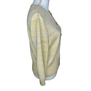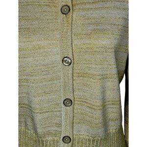 St. John Knitted Button Down Wool Beige Gold Metallic Sweater Cardigan Sz M
