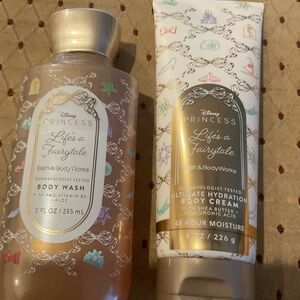 Indulge in the enchanting Disney Princess Bath & Body Works set. This delightful collection features a pink and gold theme, perfect for adding a touch of magic to your bath routine. Enjoy the luxurious body wash and ultra-hydrating body cream, designed to leave your skin feeling soft and pampered. Included pretty lipstick hi,der
