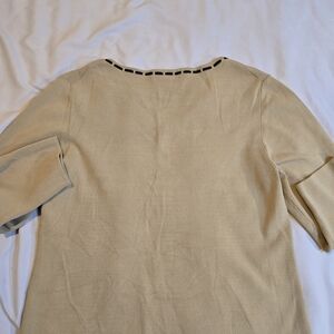 Cable & Gauge Tan V-Neck Sweater with Black Contrast Stitching XL