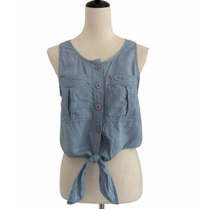 Free People Highway Cruisin' Tank Womens XS Blue Linen Blend Button Front Tie
