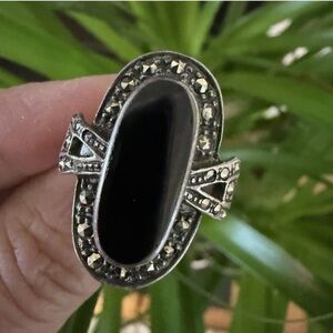 Elegant Black onyx and sterling Silver with Marcasite stones Women's Ring