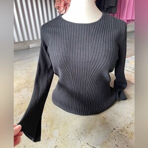 Future Collective Womens Pullover Black Long Sleeve Ribbed Sweater Cut Out Plus 1XL.