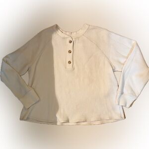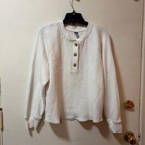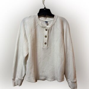 🧡 Old Navy Plush-Knit Waffle Henley – Size L – Long Sleeve - White/Cream