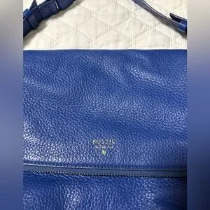FOSSIL Preston Royal Blue Pebble Grain Leather Flap Crossbody Bag #ZB5875