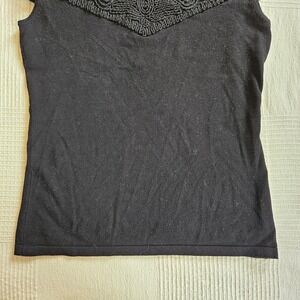 Leo Guy Black Knit Quiet Luxury Embroidered Cap Sleeve Scoop Neck Top Women 2