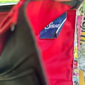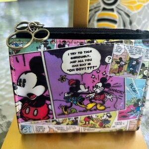 Vibrant Disney wallet with red and black tones. Features a playful design and practical compartments.